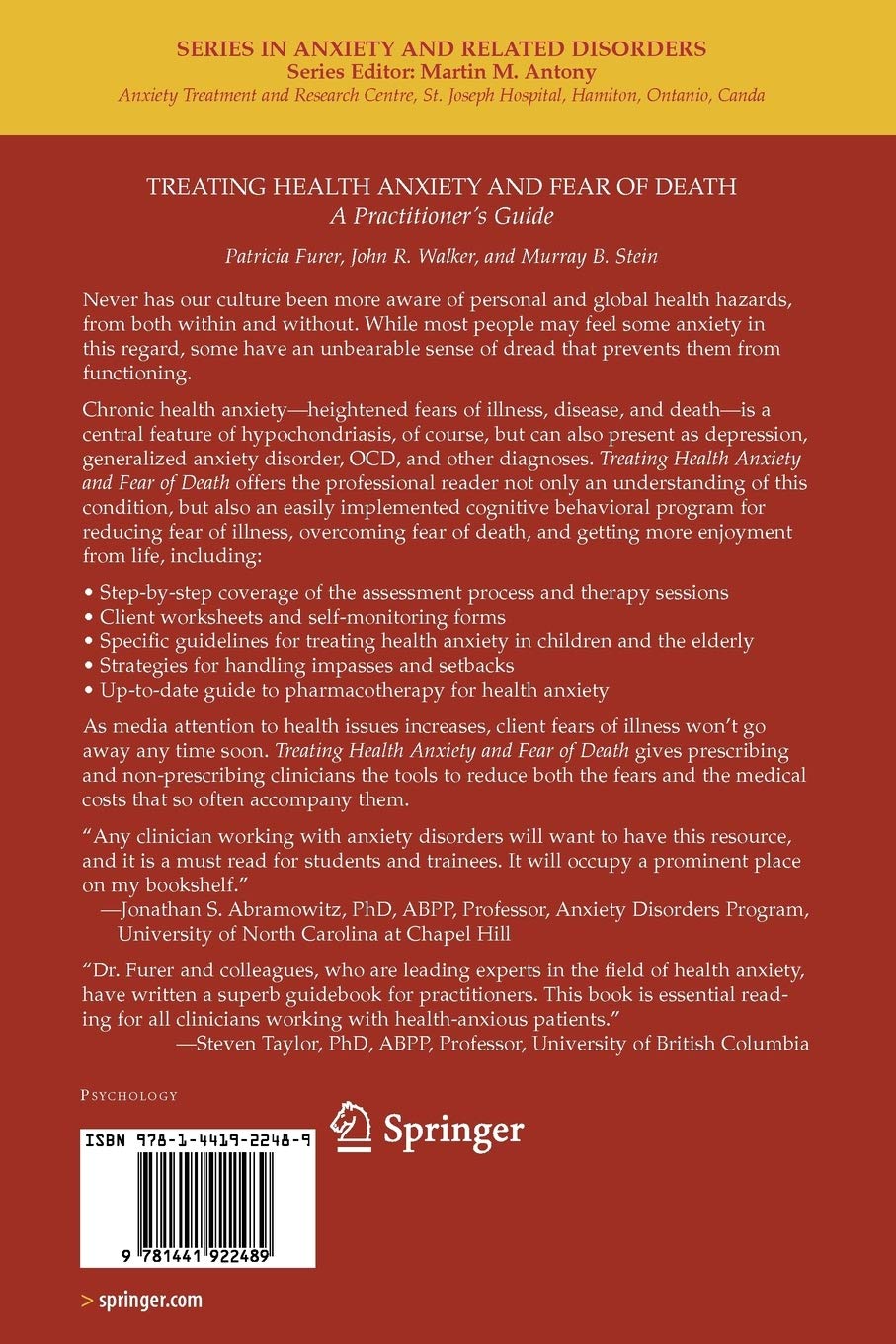 Personality and individual differences, 89, . Summary health anxiety involves fears of having or developing a serious disease such as cancer, heart disease,. Furer, patricia, walker, john r., stein, murray b. 35 to r =.77 7, 50, 53, 123, 125, 126. A place for people with health anxiety / illness anxiety / hypochondria to come together and start taking control of their disorder.